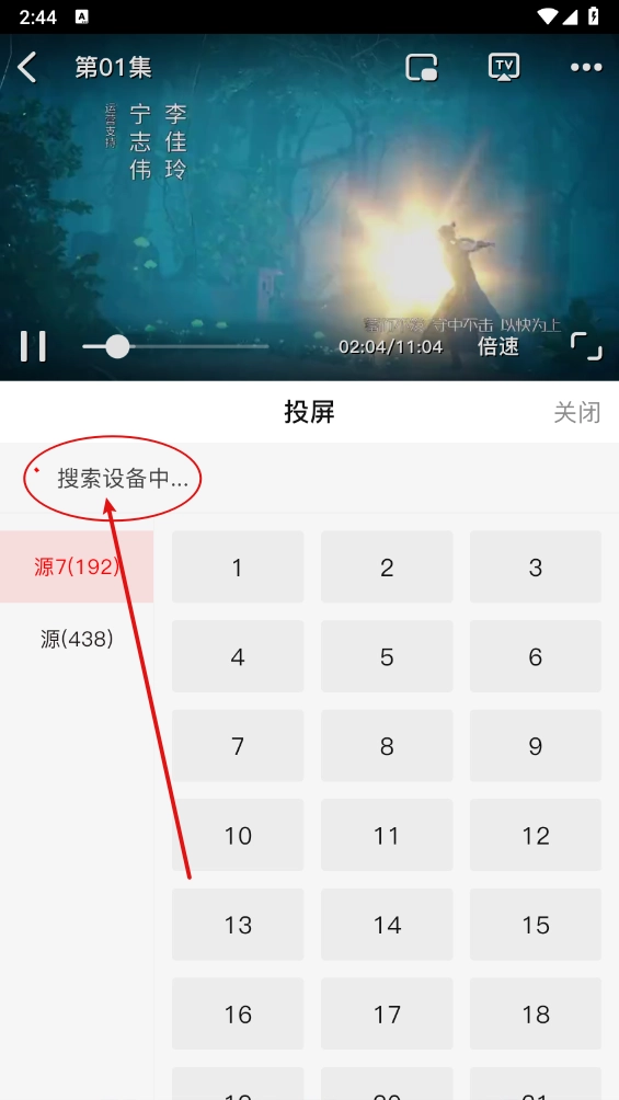 3、接着进行搜索连接设备即可进行投屏播放,需要注意的手机和投屏的设备要处于同一网络才能配备成功。