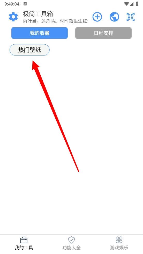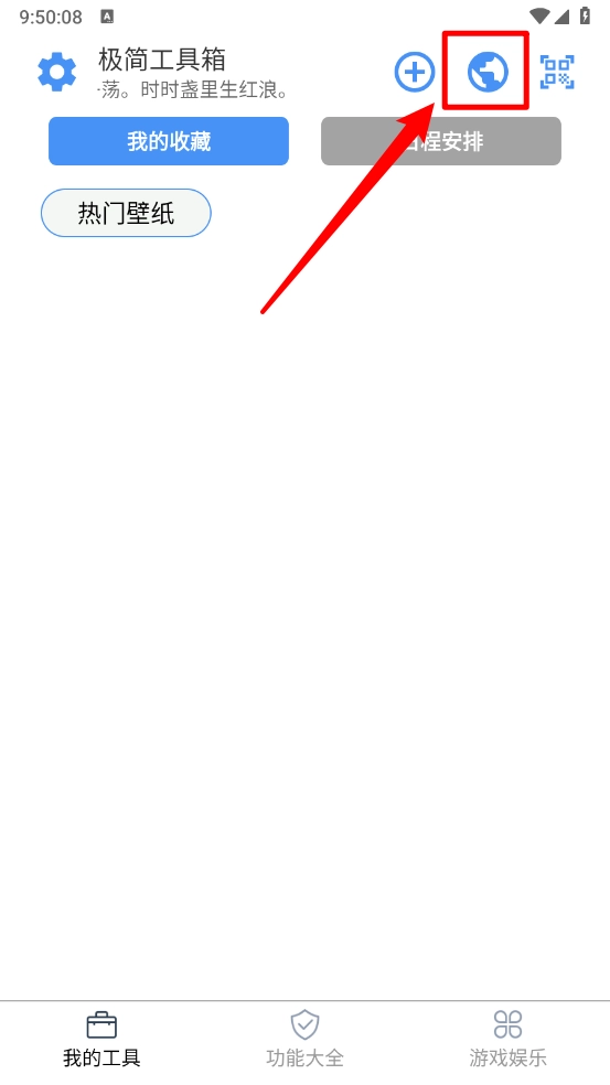 1、在极简工具箱主页点击右上方箭头所指图标。