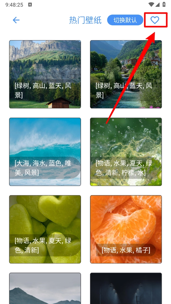4、比如进入热门壁纸页面点击右上角爱心图标。