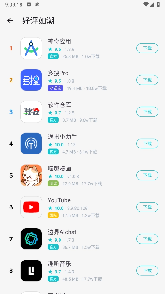1、打开神奇应用,进入“好评如潮”板块就能浏览热门软件。