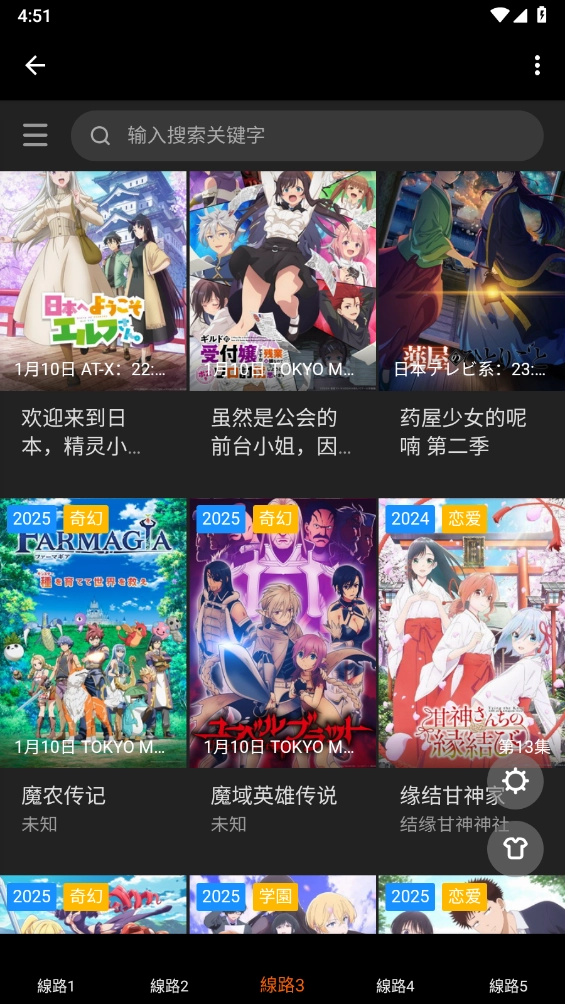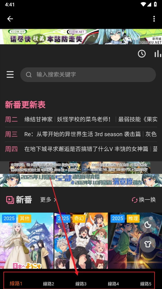 1、先在本站安装软件,进入主页后,就能看到包含多个线路的动漫资源。