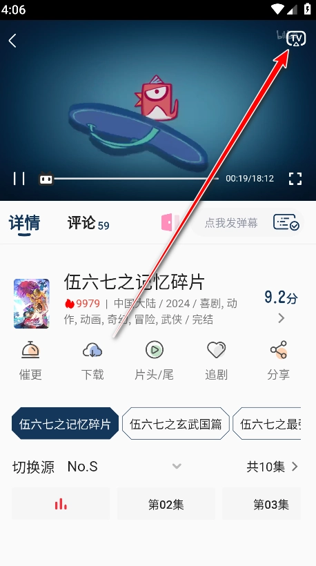 3、在播放详情页点击"tv"标志。