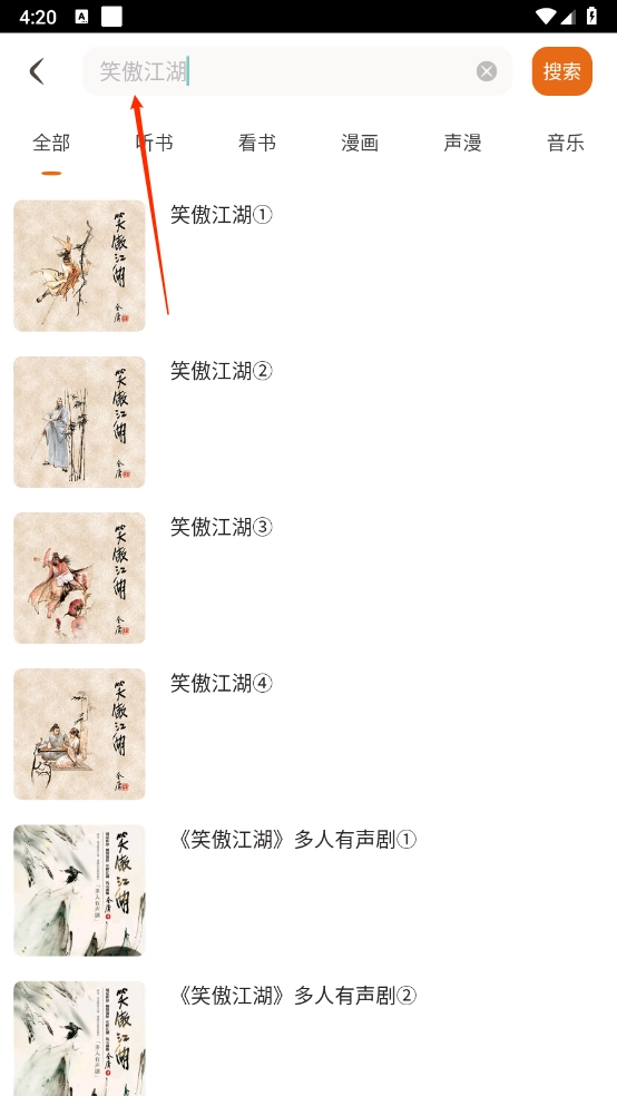3、可以直接搜索你喜欢的内容,无论是《倚天屠龙记》还是《射雕英雄传》,都能轻松找到,非常方便。