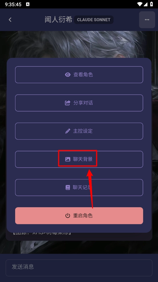 3、弹出弹框,点击"聊天背景"。