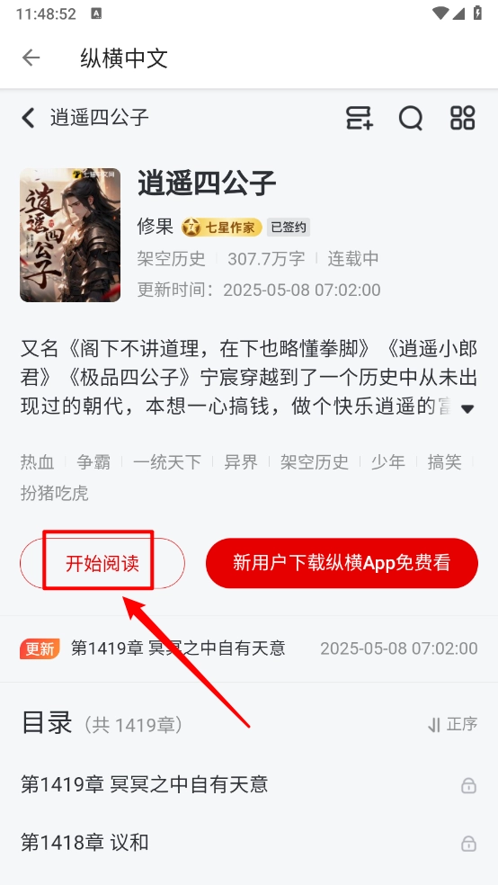 3、如图所示,在详情页点击"开始阅读"。