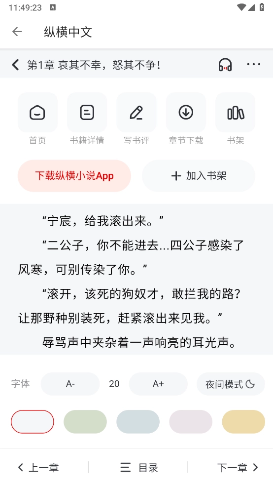 4、进入阅读界面后即可开始阅读,该界面支持听书功能、目录查看以及阅读模式设置。