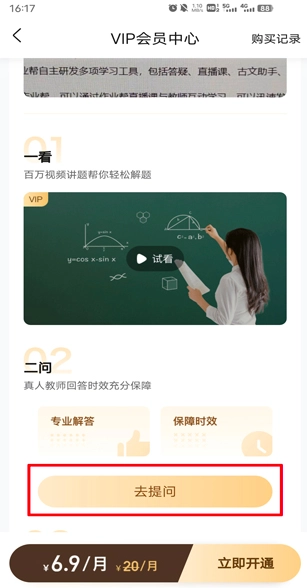 4、点击"开通vip会员"后即可进行提问了。