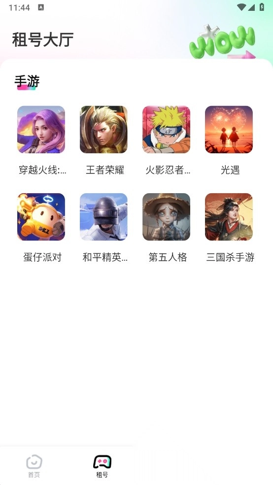 2. 租赁账号的类型包含了不少热门游戏,像《王者荣耀》《和平精英》《蛋仔派对》《火影忍者》之类。另外,平台还提供新用户红包福利,能让用户用实惠的价格体验游戏的快乐。