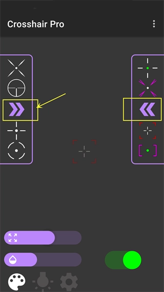 3、当然软件内的准星类型远不止展示的这些,可以点击下图所示的箭头按钮查看更多的准星类型。