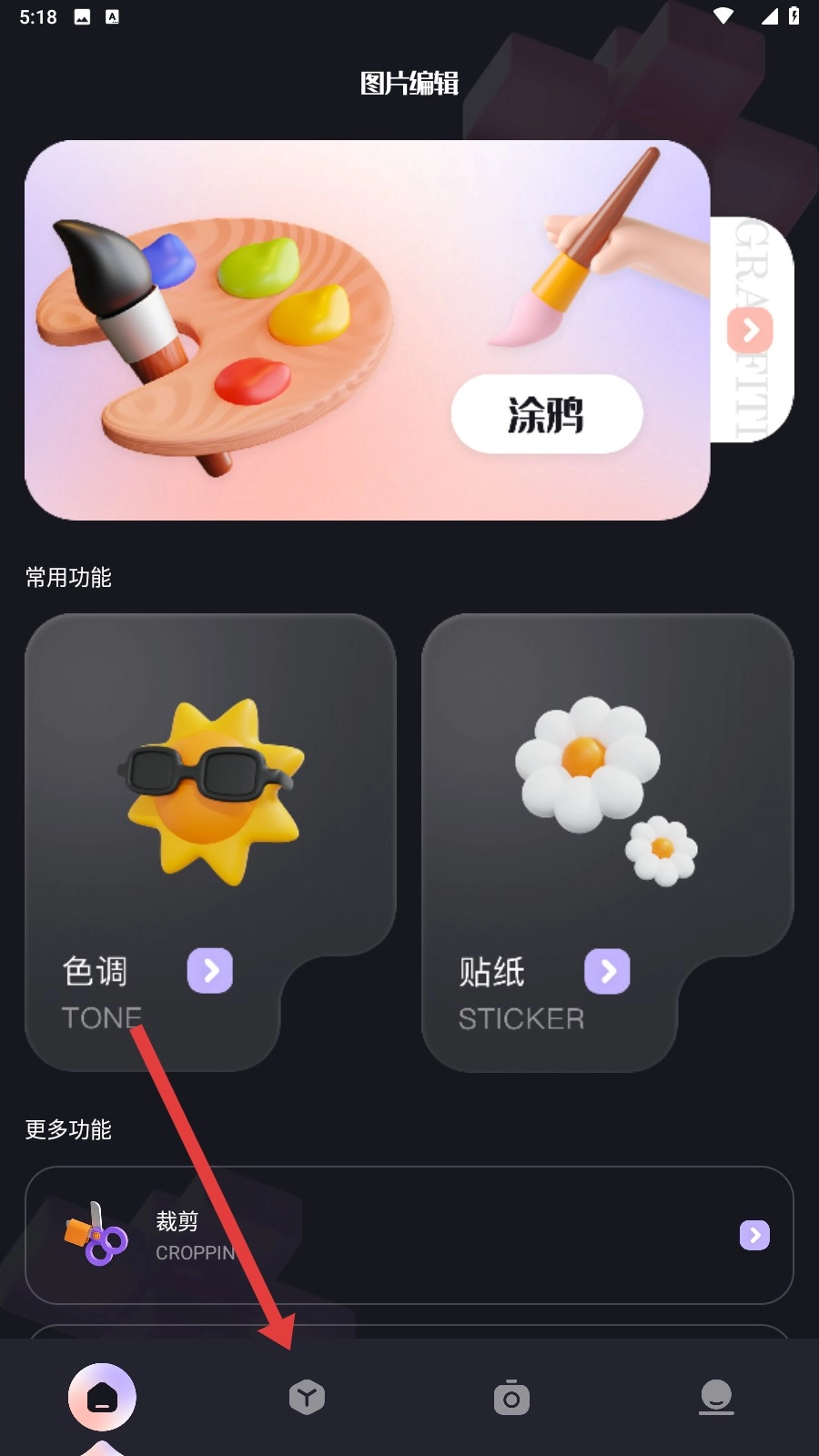 进入图片编辑页面后,点击底部对应的功能图标,就能进入【图片拼接】功能界面,开始图片拼接操作。
