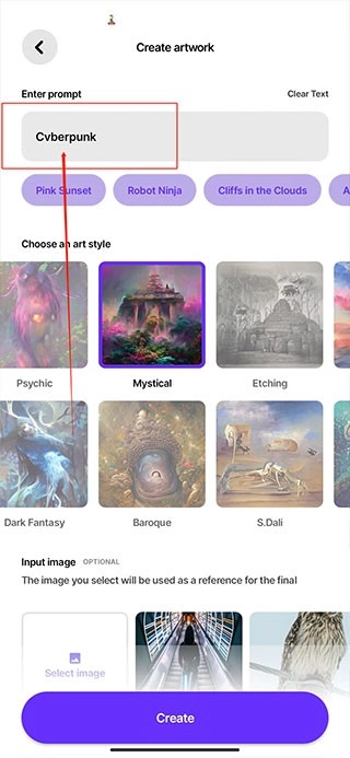 2、然后看到“Type anyting”的输入框,输入想要的风格,例如 Cvberpunk (赛博朋克)
