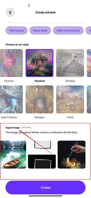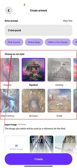 3、然后看到下方 「Choose an art style」 选择想要的风格,这里我推荐Fantasy Art 这个效果,比较接近赛博朋克的感觉!