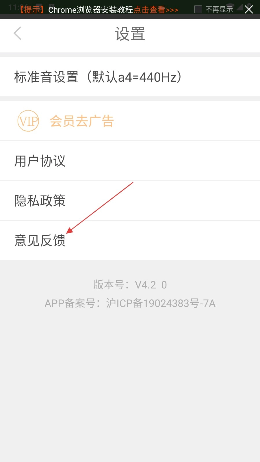 2、在设置页面,点击【意见反馈】选项,进入意见反馈页面。