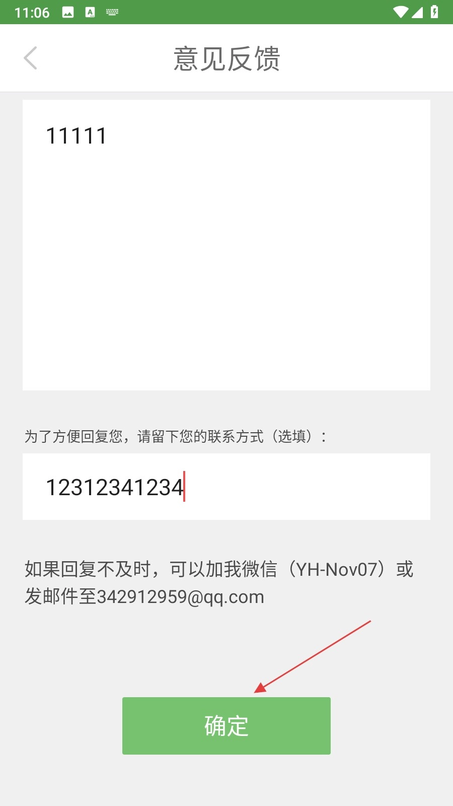 4、内容填写完毕后,点击【确定】按钮,即可提交意见反馈。