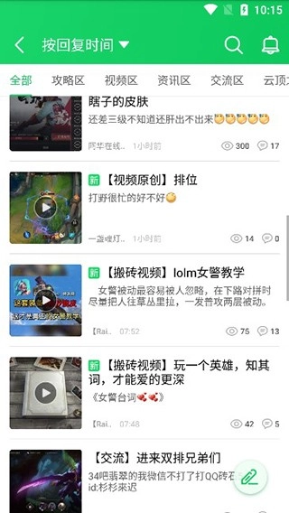 在社区版块里,能看到lol、原创技术、王者荣耀等众多分区。