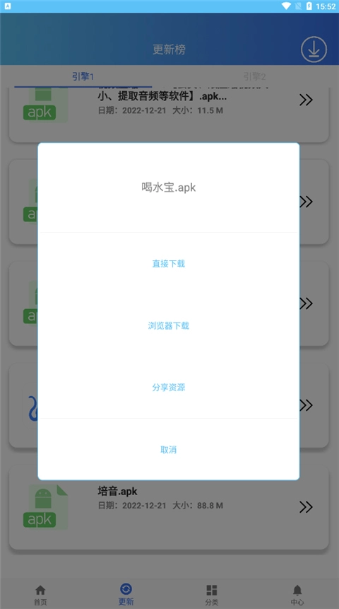 6、这以喝水宝为例子,点击喝水宝即可直接,也可以选择浏览器进行,另外还可将资源分享给第三方小伙伴都是可以的。