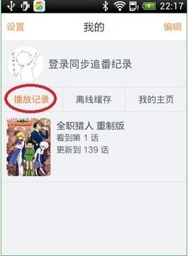 点击【我的】按钮,在该界面可以看到自己的播放记录。