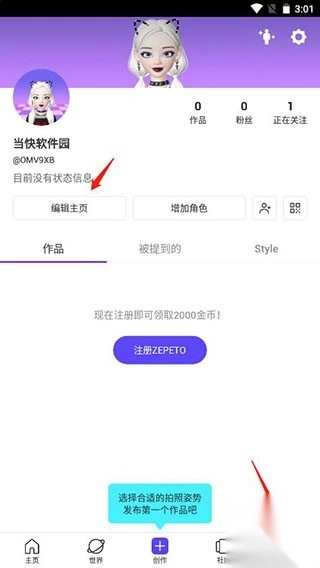 1、点击我的,编辑主页;