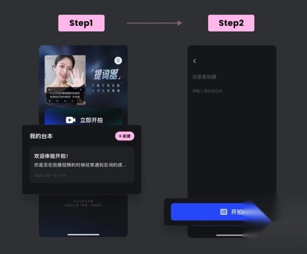1、在首页点击我的台本,右上角新建,输入或者粘贴文案后,点击页面底部下开拍,按钮,即可成功开启提词器