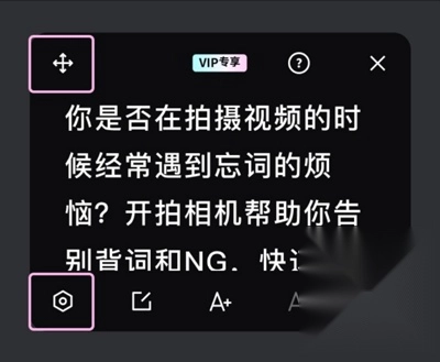 1、点击提词器顶部或左上角图标即可拖动任意位置,点击右下角图标即可调整提词器展示大小长宽度。