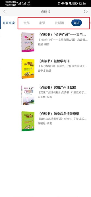 2、可在上方栏目中左右滑动,筛选出自己想要点读的语言后点击进入。