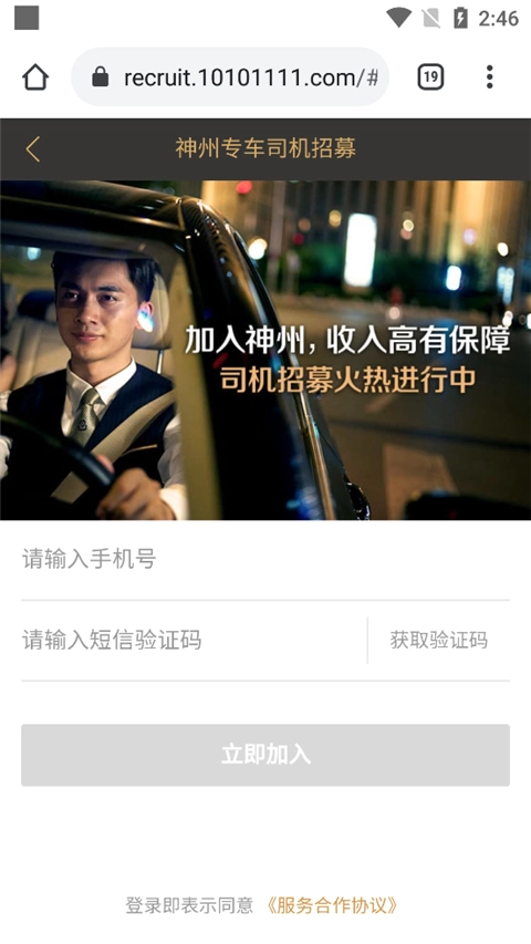 1、进入神州专车司机端最新版,点击加入;