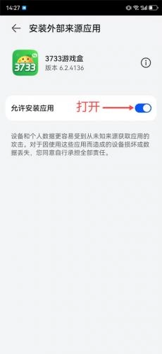 4、将3733游戏盒【允许安装应用】打开。