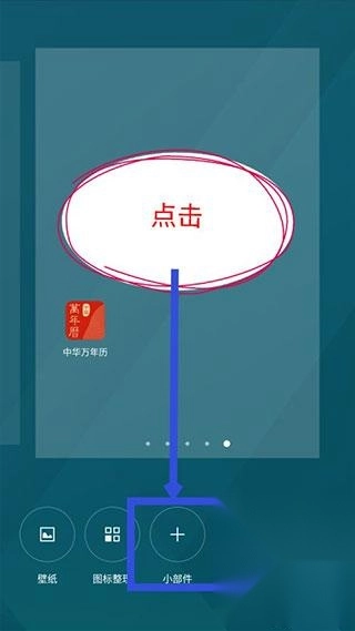长按后会弹出选项界面,点击下方的小部件选项即可,操作示意图如下。