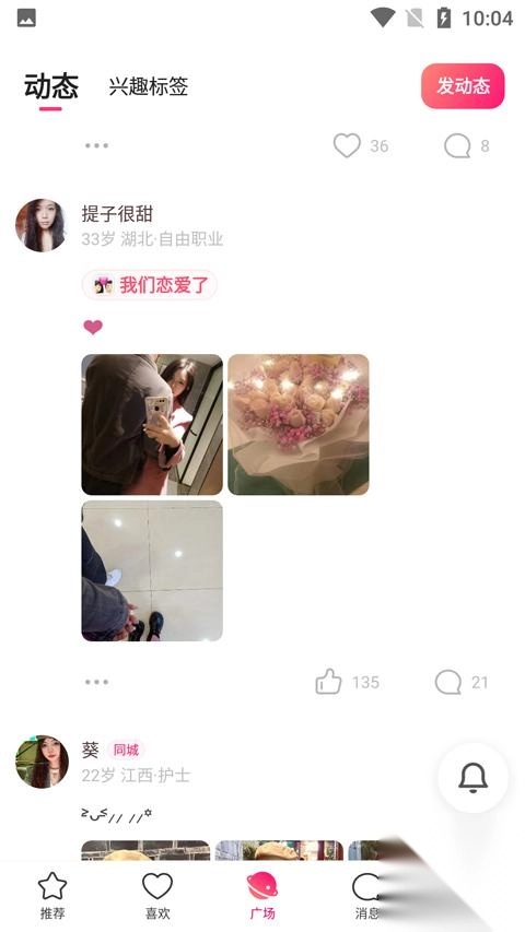查看附近人发布的动态,可进行评论交友。