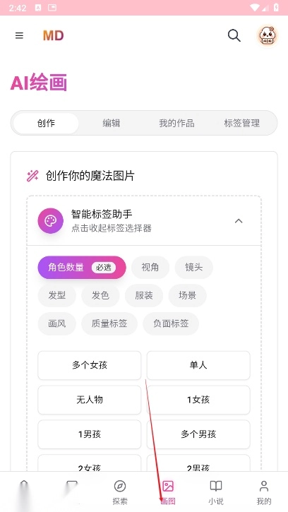 打开mudanAI平台,在首页找到“角色工坊”或“创建角色”入口,点击进入创建页面。