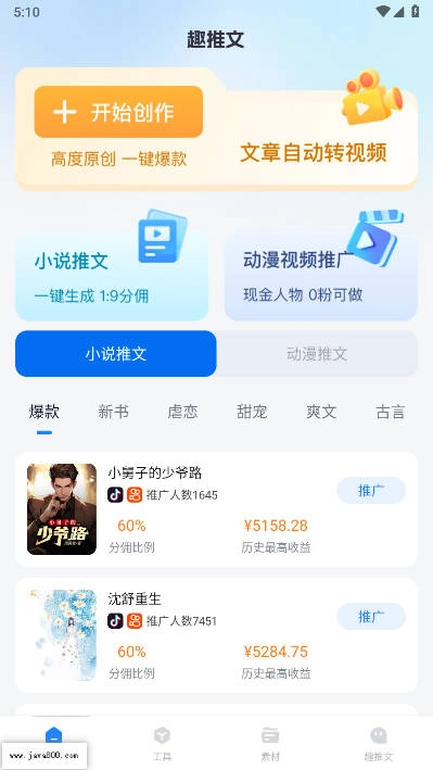 趣推文是一款集创作与变现功能于一体的实用服务平台,对于想把小说内容快速做成漫画视频、同时希望通过内容赚钱的用户而言,它用起来确实很顺手。它的优势在于配备了高效的自动化创作工具,能大幅压缩视频制作时长——原本可能要花2-3小时,现在几十分钟就能搞定。而且平台确保所有内容都是原创的,这样就能有效规避因内容重复被平台降权的问题,让视频上热门的机会更大。所以不管是看创作效率还是内容质量,趣推文都值得大家试一试。