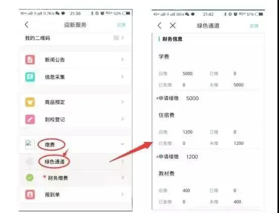 若你已申请生源地贷款、计划到校申请校园地贷款,或是因其他困难需申请缓交费用,务必申请绿色通道。