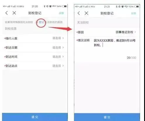 提交按钮,之后需等待院系与学校的审核流程,可随时查看审核进度以了解当前状态。注:绿色通道审核时间:报到现场审核。