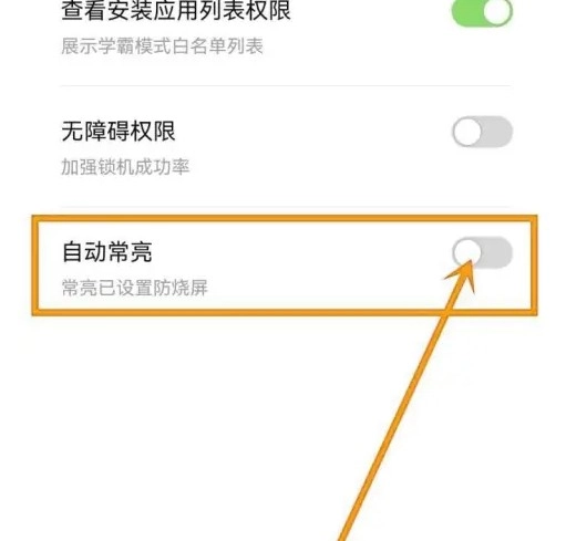 在专注模式的设置界面里,找到【自动常亮】这个功能选项并将其关闭,这样就能完成想要的设置了。