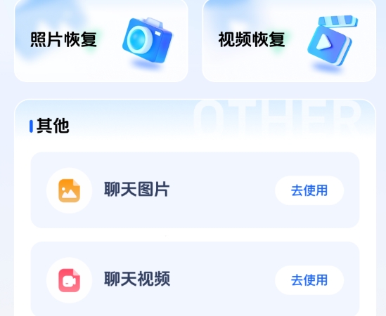 2主页面展示的功能选项十分多样,不仅支持图片与影像资料的找回操作,还能激活针对社交记录中文件的复原功能。