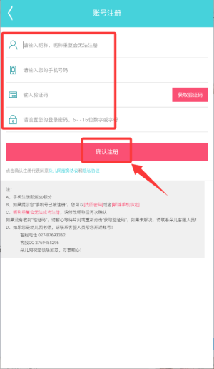 2、按照顺序填写昵称、手机号码以及密码等相关信息,以此完成账号注册流程。