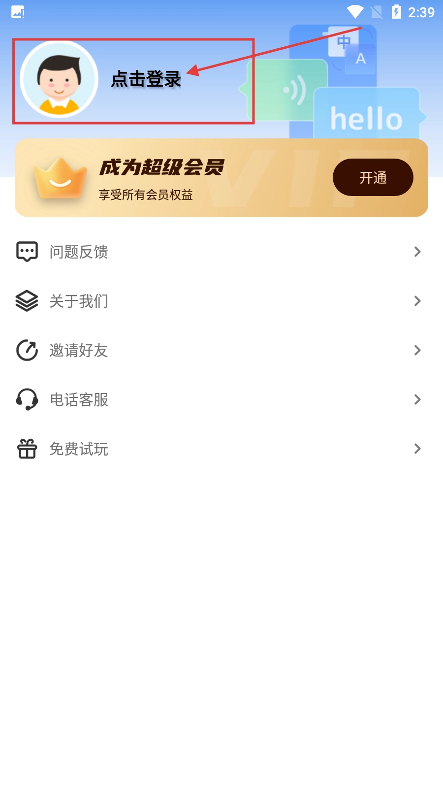 在个人中心界面,点击标有【点击登录】的区域,即可进入登录流程,这样就能体验更多软件服务了。