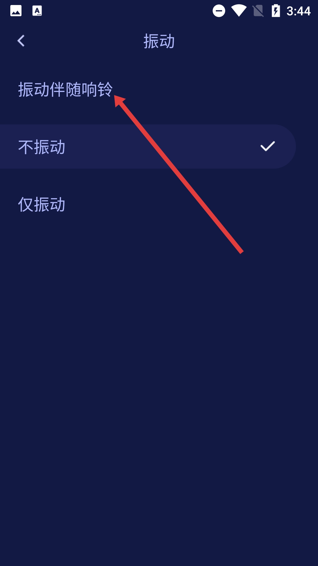 4、在振动设置页面,选择【振动伴随响铃】选项,完成振动模式的设置。