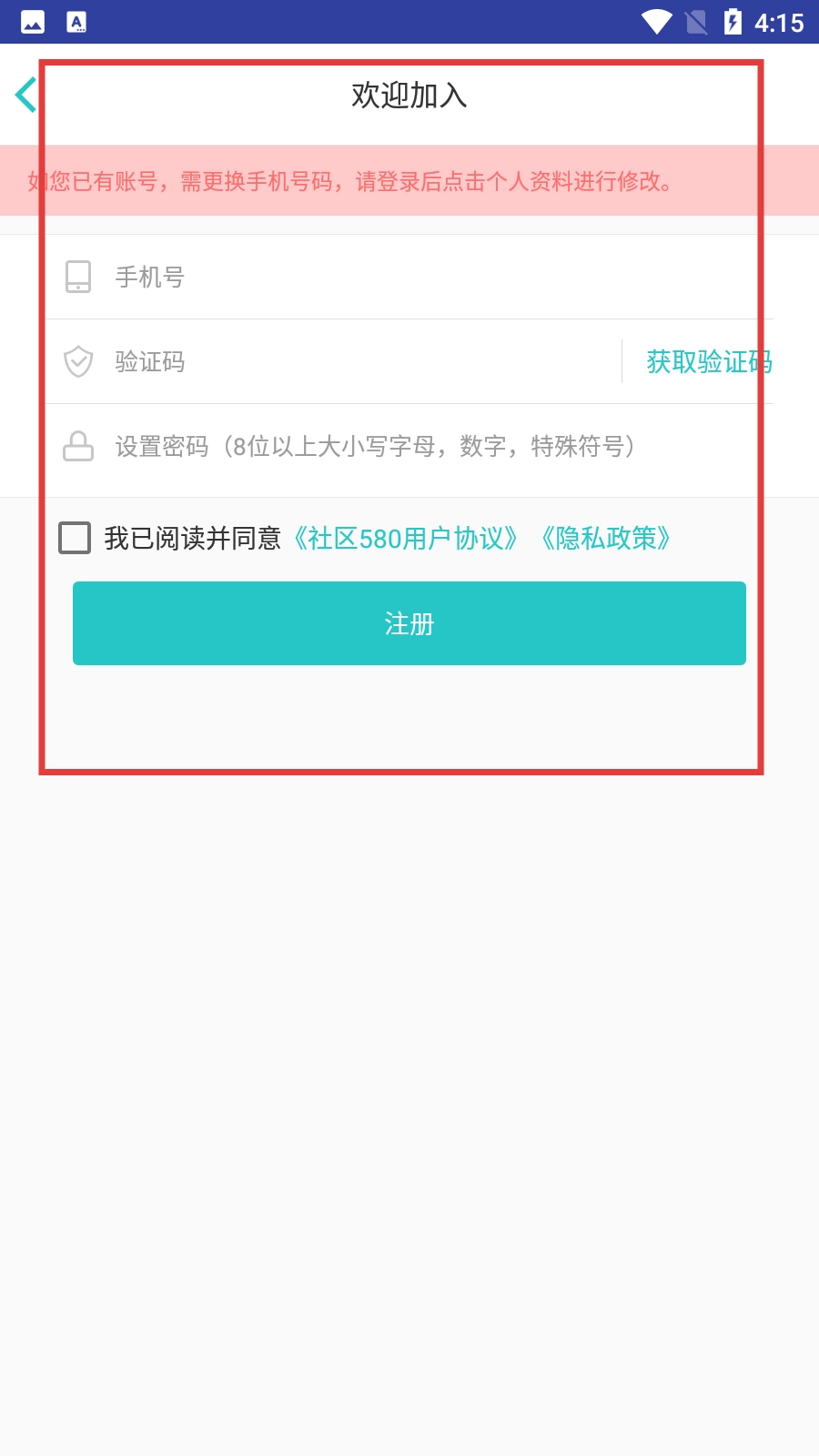 4、注册时依次输入手机号、获取并输入验证码、设置符合要求的密码,勾选同意协议后点击【注册】完成注册。
