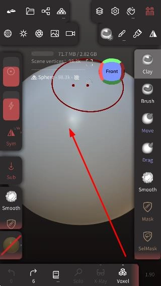 1、在3D建模操作界面开展模型创作相关操作,例如对球体模型进行编辑处理。