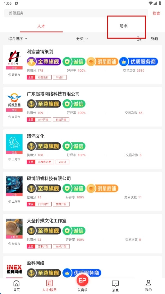 1、点击底部的【人才/服务】功能按钮,即可进入人才服务页面。