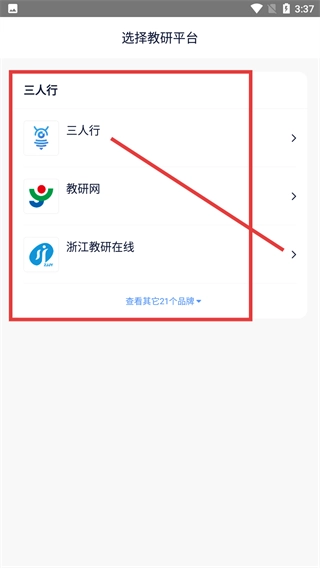 2、同意协议后,进入选择教研平台页面,比如选择【三人行】平台,可进入该平台登录界面。