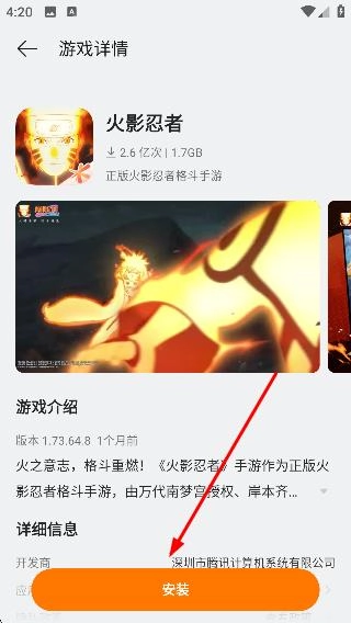 4、进入游戏详情页面后点击【安装】,即可开始安装该游戏。