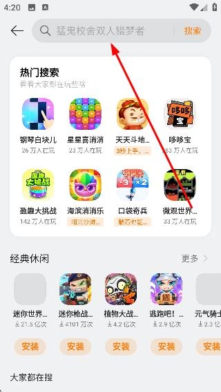 1、打开OPPO小游戏最新版后,用户可以浏览推荐的游戏或者通过搜索功能找到自己喜欢的游戏。