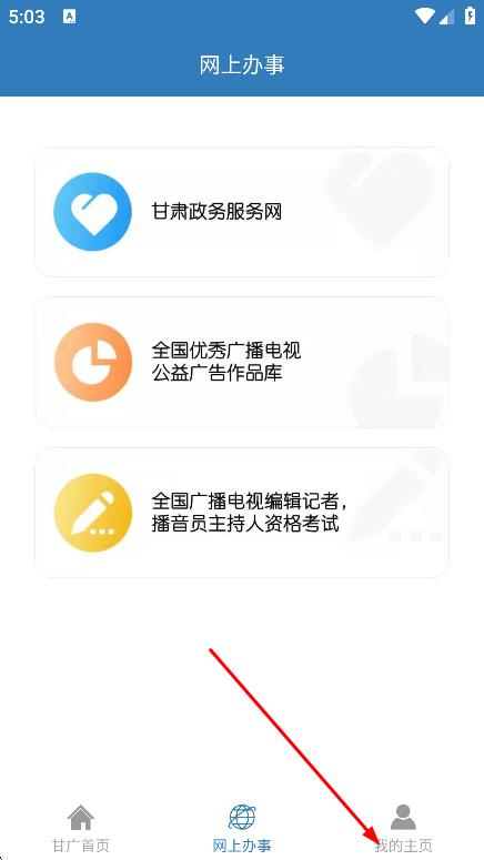 1、在网上办事的页面,点击“我的主页”,进入登录界面。