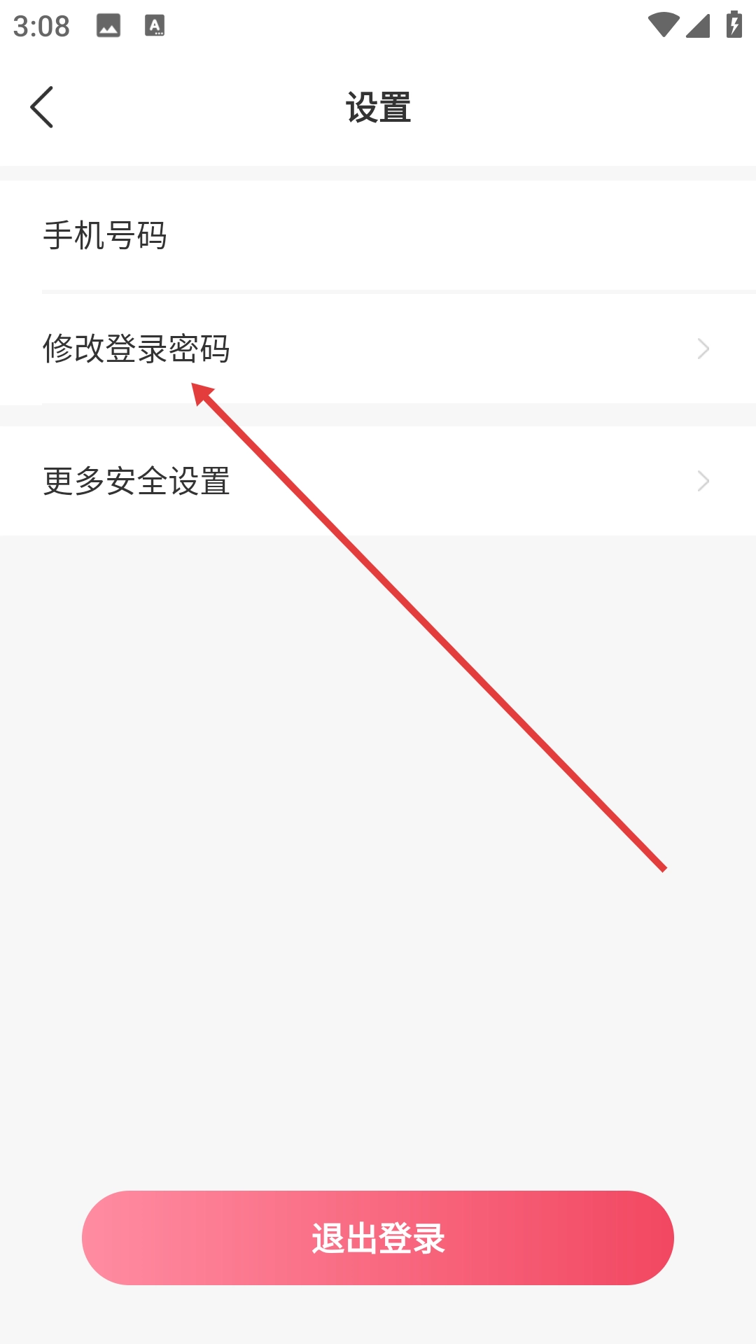 3、在设置页面点击【修改登录密码】选项,即可进入设置密码的页面。