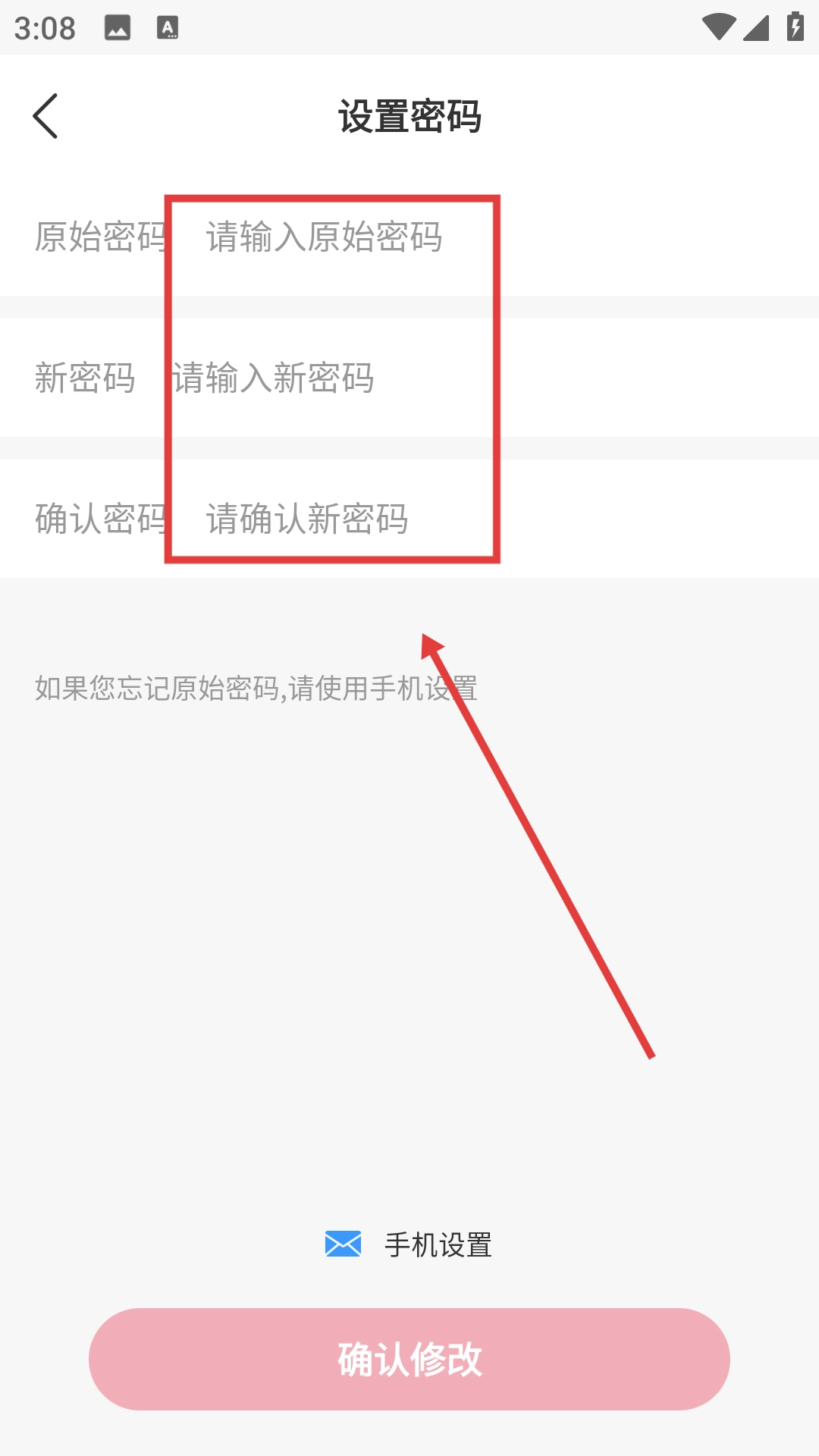 4、进入设置密码页面后,按顺序输入原始密码、新密码并再次确认新密码,随后点击【确认修改】按钮,即可完成登录密码的修改流程。