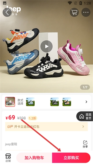 4、点击【立即购买】,完成该运动鞋的购买流程。