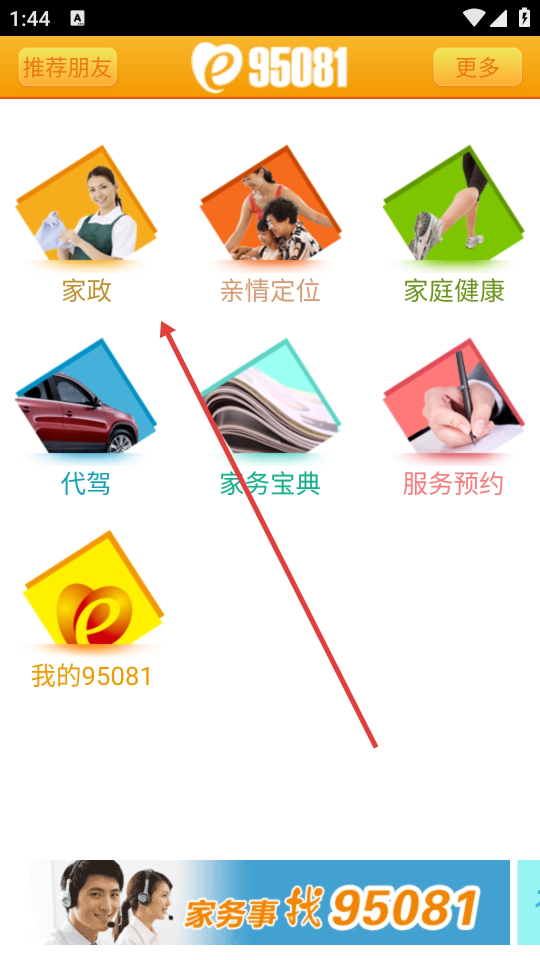 1、点击【家政】选项,进入家政服务界面后,就能浏览小时工、月嫂、保洁等各类家政服务项目。