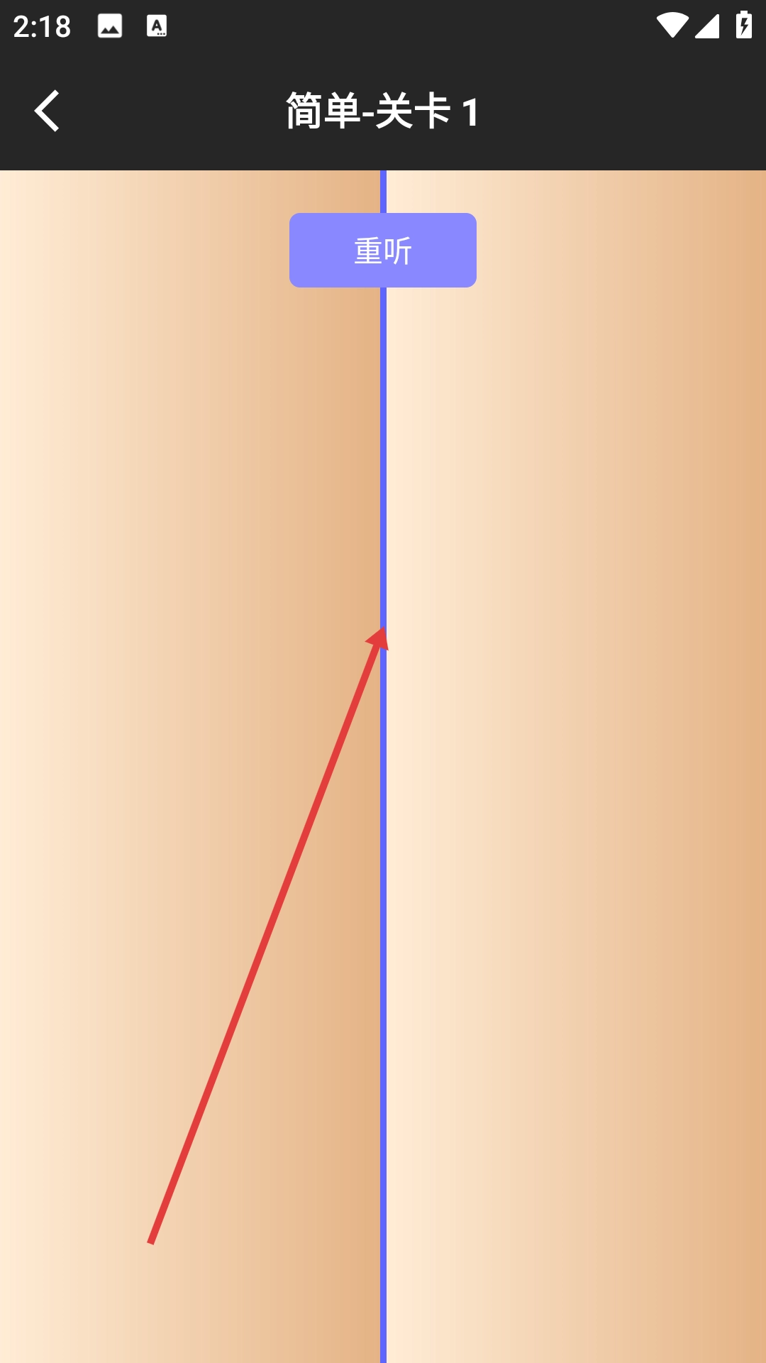 4、在简单关卡1的页面中能够开展节拍训练,要是需要再次聆听,点击【重听】按钮即可。